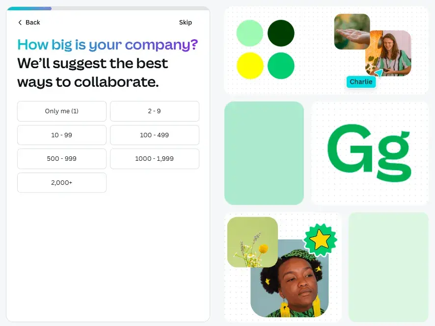 Make sure to tie every question to a clear benefit. Canva does an excellent job at this by clarifying how they’ll use the info required: