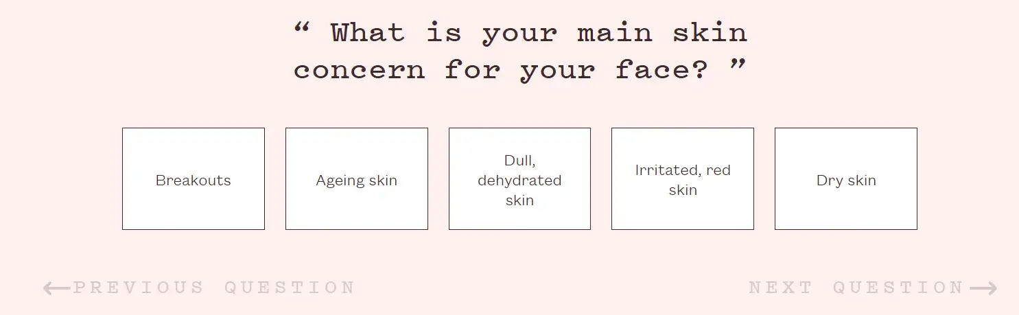 Stick to 3-5 questions and avoid dropdown menus or open-ended questions. Some brands even let users skip a question or two and still get the results.