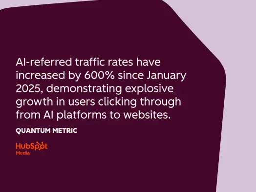 13. AI-referred traffic rates have increased by 600% since January 2025, demonstrating explosive growth in users clicking through from answer engines to websites.