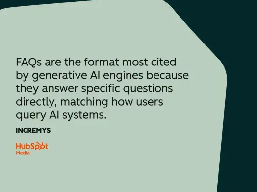 21. FAQs are the format most cited by generative engines because they answer specific questions directly, matching how users query answer engines.